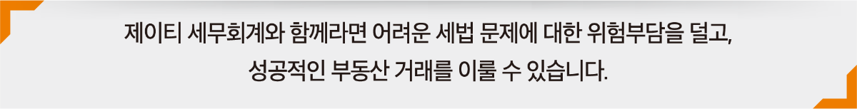 전문적인 지식과 경험을 바탕으로 한 세무사의 상담은 부동산 거래의 성사율을 높여 공인중개사님들의 매출 증가로 이어집니다. 현재 제이티 세무회계는 많은 공인중개사님들과 함께하고 있으며, 부동산 공인중개사님들에게 특화된 프리미엄 세무 서비스를 제공하여 고객분들의 세법적 문제를 전문적으로 해결하고 있습니다.